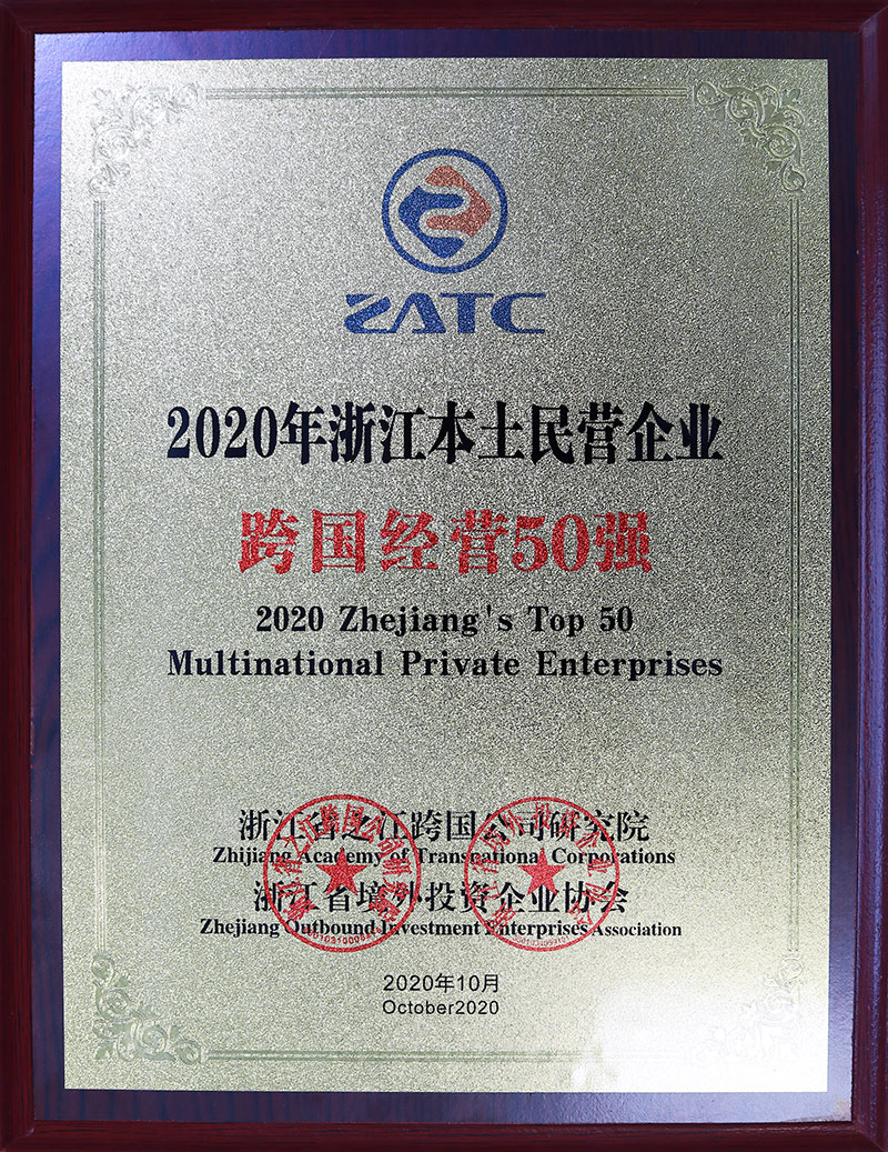 集团荣获2020年浙江本土民营企业跨国经营50强